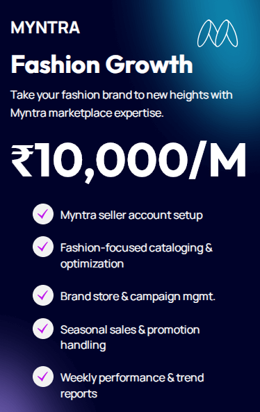 We specialize in delivering result-oriented ecommerce management solutions that improve product visibility, enhance customer engagement, and drive higher conversions on Myntra.